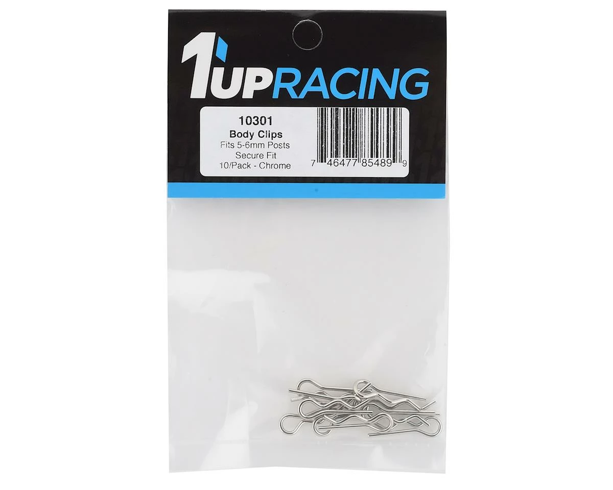 This is a pack of ten 1UP Racing Chrome Body Clips. Made from stainless steel for long term dependability, these chrome plated body clips offer a secure fit and lay flat for a clean look.