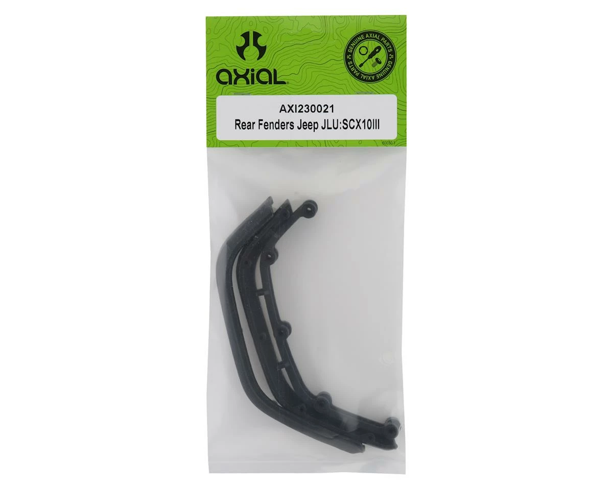 Axial SCX10 III Jeep JLU Rear Fenders. This is the replacement rear fender set for the Axial SCX10 III Jeep JL. Package includes rear fenders and inner brackets.