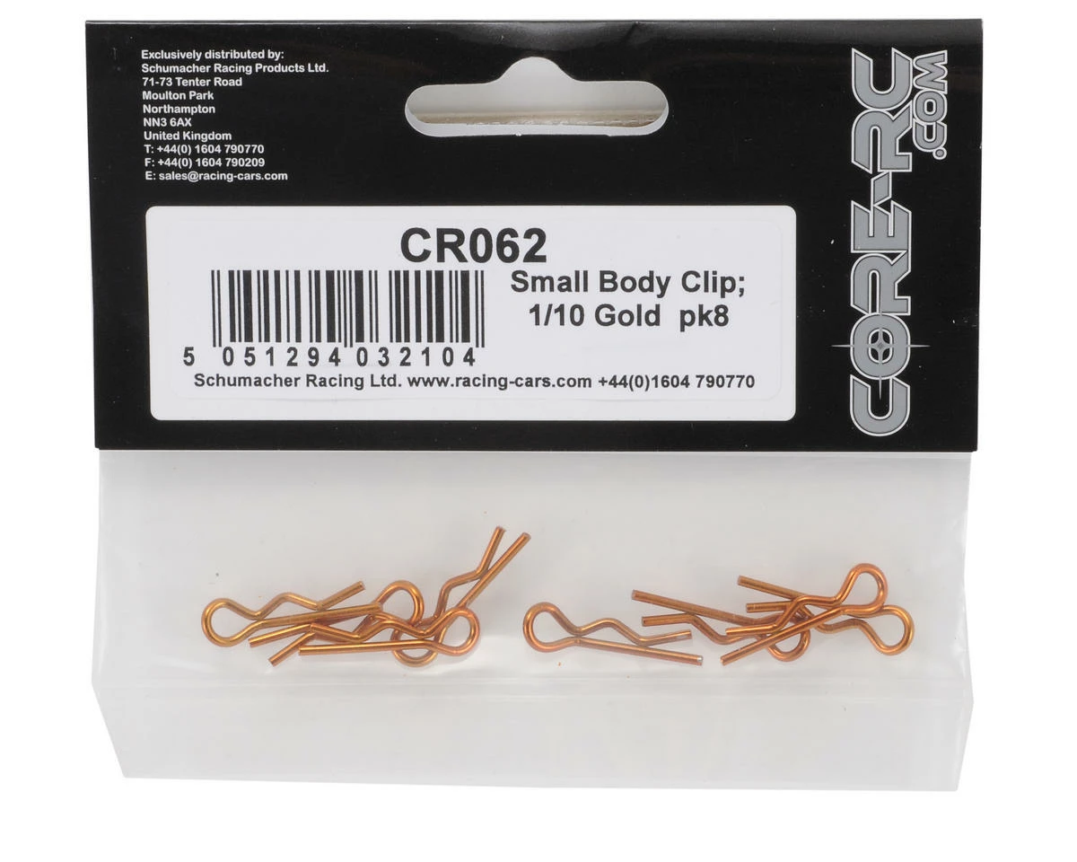 This is a pack of eight Core-RC 1/10 Scale Small Body Clips.