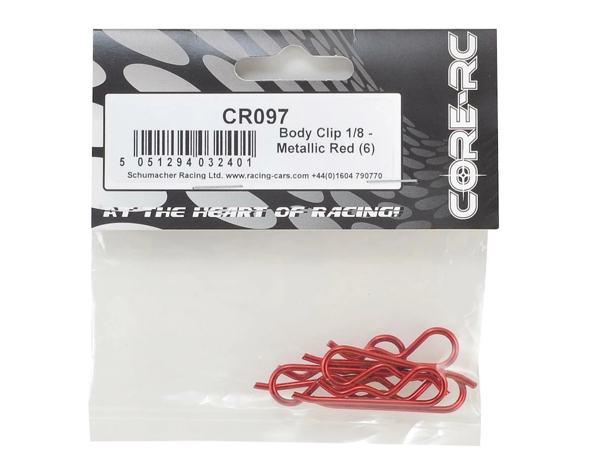 The Core-RC 1/8 Scale Body Clip are a great option to secure your body to your 1/8 scale chassis. Available in multiple color options to best match your build. Package includes six body clips.