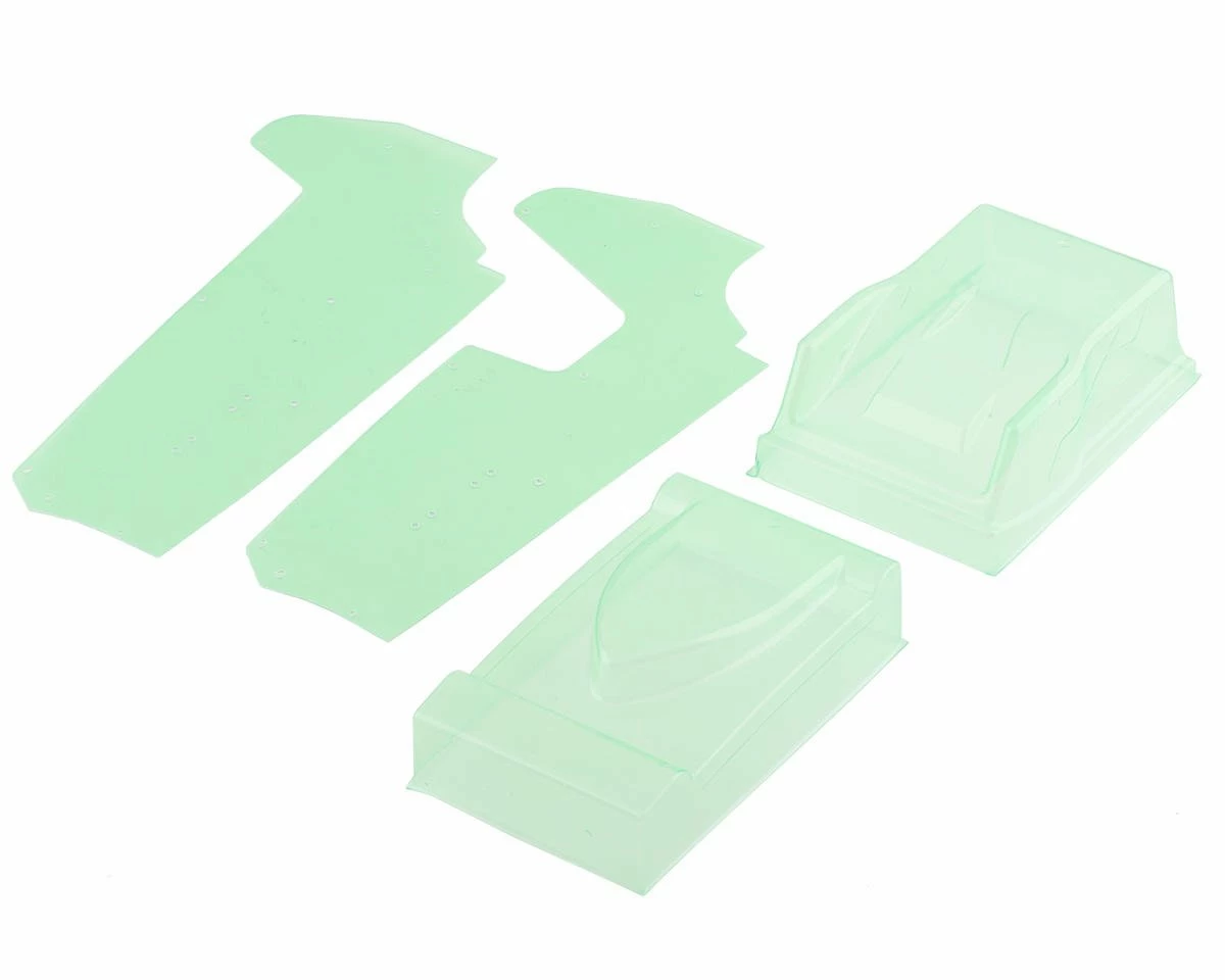 Custom Works Eldora Sprint Body. The Eldora sprint body features an updated hood and nose for a better fit and improved aerodynamics. This optional clear body kit is intended to fit the Outlaw 4 and Enforcer 7 vehicles. Package includes one clear hood panel and one clear nose panel.