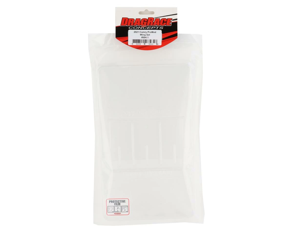 The DragRace Concepts 2021 Camry Pro Mod Wing Set is a replacement wing assembly for the DRC 2021 Camry Pro Mod body. This wing is pulled in .030 clear lexan and pre-dimpled for easy cut out and installation.