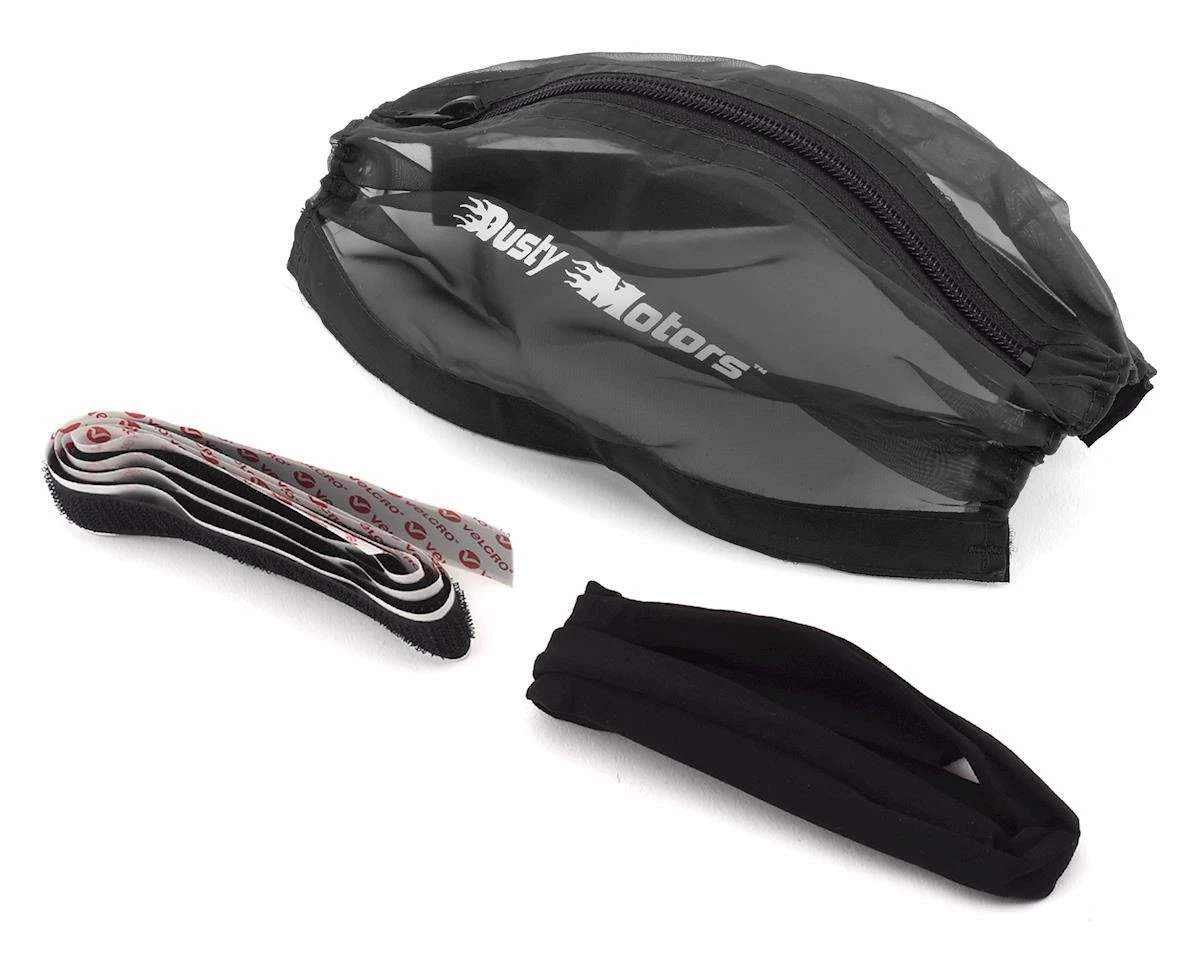 The Dusty Motors Traxxas 1/16 Scale Protection Cover is a high quality, hand made, dust and water splash proof shroud, designed specifically for the Traxxas 1/16 scale family of models. The shroud features a zipper access opening, helping to simplify connecting/disconnecting batteries and accessing the power switch, eliminating the need to remove the shroud every time you need access. The shroud is made from high quality, breathable material that is strong, durable and efficient. The open area of the material is more than 50% of total shroud surface, so it allows excellent airflow to keep the model electronics cool, while preventing debris, moisture and other contaminants from getting in the chassis.