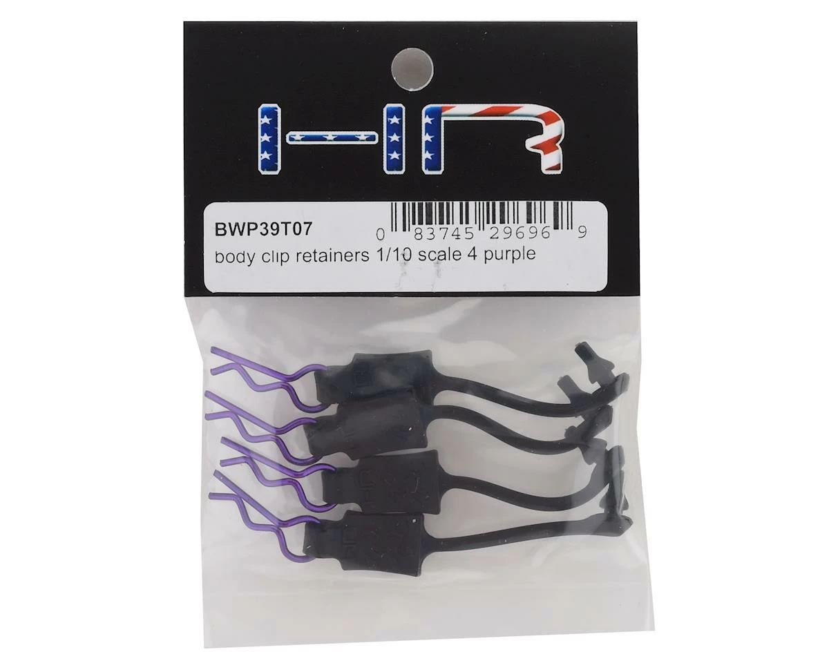 This is a pack of four Hot Racing 1/10 Body Clip Retainers. These silicone rubber body clip retainers are intended for use with 1/10 scale vehicles and are available in a variety of colors to add a personalized touch to your car. Â