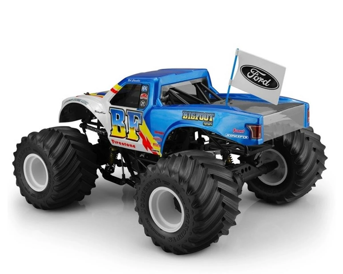 The clear JConcepts body shell includes Ford Raptor decal sheet, BIGFOOT 4×4 decal sheet, window mask, and instructions. The genuine body shell is backed with JConcepts customer support and racing heritage. Whether it is making record jump attempts, ascending new heights, or famed racing championships, Team BIGFOOT is synonymous with success.