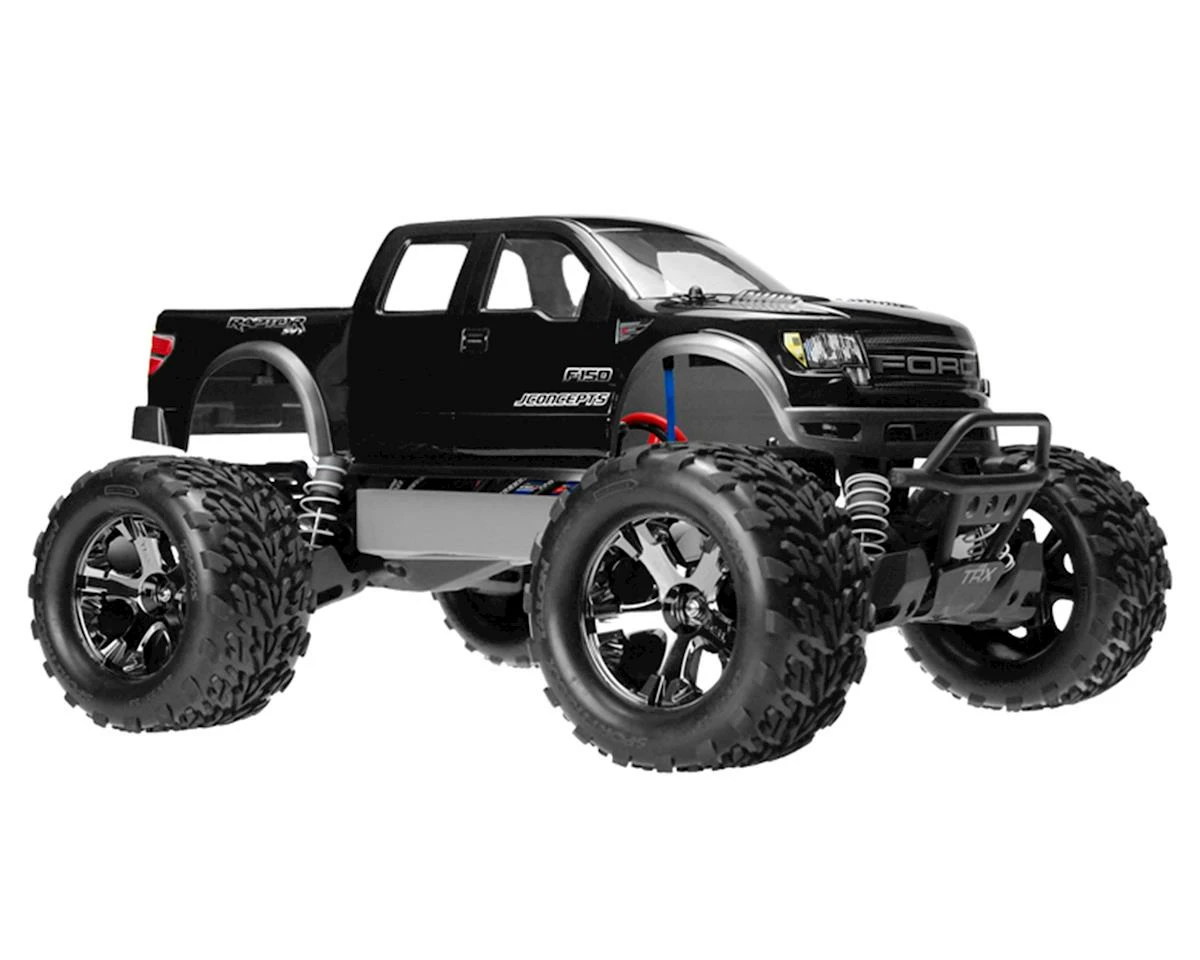 The Raptor SVT – F-150 body by JConcepts begins with the latest in 1:1 truck detail by incorporating the latest treatment in grill and headlight design with pronounced bumper, adding street appeal. Front and rear fender flares provide the clearance necessary to run an assortment of tires and wheels while maintaining that exclusive design. Super Crew cab design with recessed side windows, louvers along the front hood and sun-roof outline highlight a number of the front-end styling cues. Deep recessed bed area with incredible detail finish off this extraordinary, tough design.