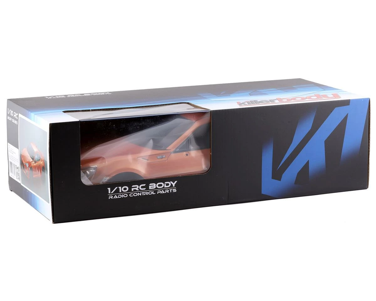 The Killerbody Toyota 86 Pre-Painted 1/10 Touring Car Body is a great optional body intended for RC drift or touring car chassis with a 257mm wheelbase and 190-200mm width. Using a 200mm chassis will allow for a more “stanced” look, while the 190mm chassis will give a more tucked look. This body has been pre-cut and pre-painted for ease of installation, however, the body post holes have not been cut allowing fitment on a variety of chassis, as well as the use of optional magnetic body mounts. Featuring many factory installed details including decals, molded wiper blades, light buckets and exhaust tips for a precise finish. Package includes pre-painted and pre-cut orange body, two side mirrors and clips for mirrors.