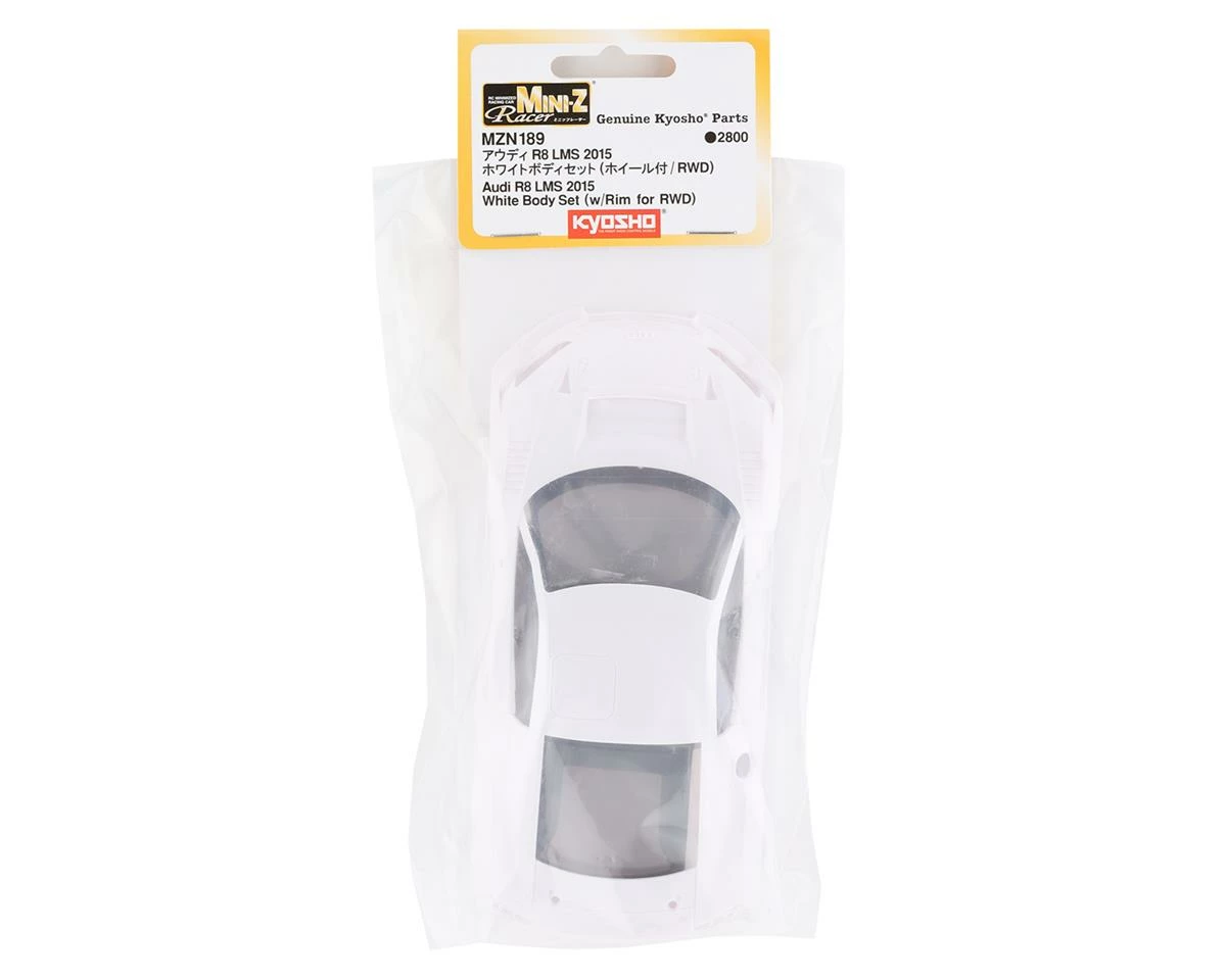 The Kyosho Mini-Z MR-03W-MM Audi R8 2015 LMS Body is a detailed body option for the MR-03W-MM platform chassis. This body is equally suited to use as a display model, or to give your existing model a face lift. Package includes one un-painted body, four wheels, one window insert and accessory parts trees to complete the body.