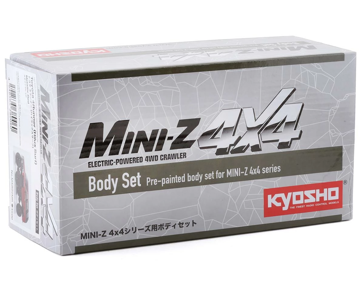 Kyosho MX-01 Mini-Z 4X4 Toyota 4 Runner Autoscale Body. Package includes factory finished body, spare tire, bumpers, accessories and hardware.