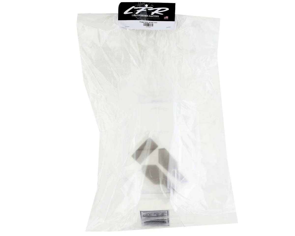 Leadfinger Racing HB D8T Evo 3 1/8 Clear Bruggy Truck Body. This body features rugged, squared off looks creating a tough and competitive body option. The cab has been squared off creating generous downforce along with a rear swoop adding to the rear downforce. This helps to create a stable platform giving you more consistent handling characteristics.