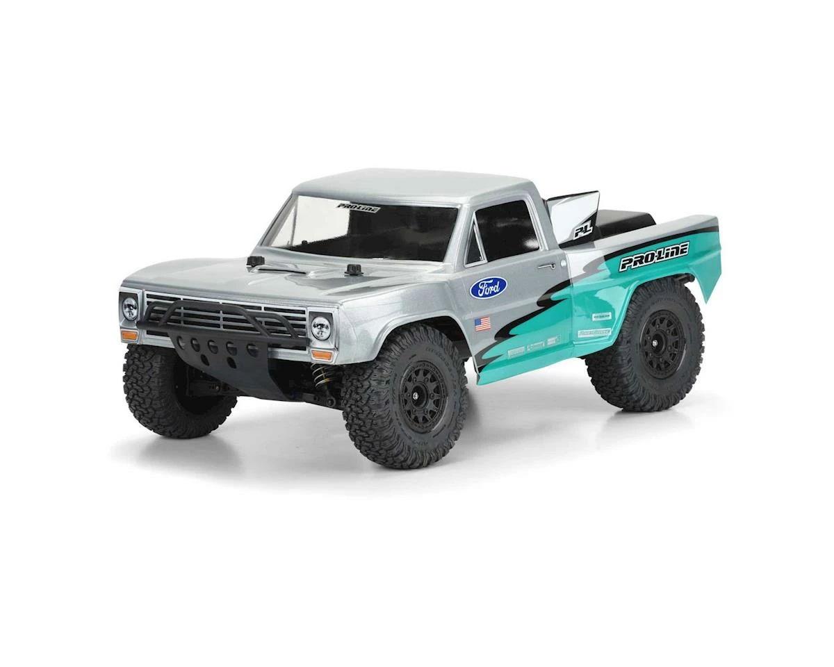 The Pro-Line 1967 Ford F-100 Race Truck Pre-Cut Body allows you to convert your Short Course truck into a fully licensed 1967 Ford F-100 Race Truck! This clear body is pre-cut for easy installation and can be fully customized with whatever paint job you desire. The 1967 Ford body features the iconic flat front F-100 grill and wide fender flares to represent the aggressive fiberglass bulges found on full-size race trucks.
