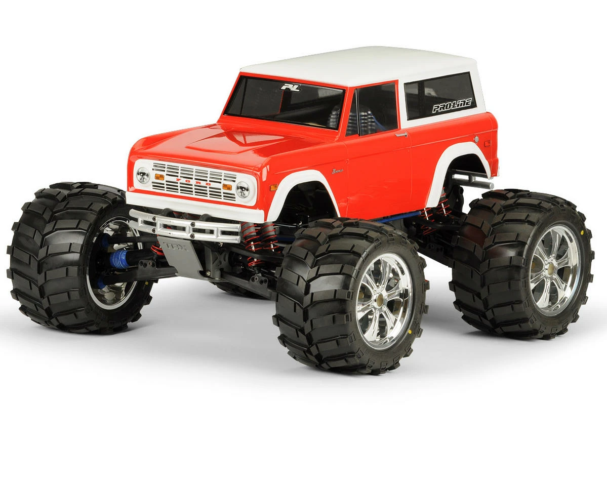 This is the Pro-line 1973 Ford Bronco Body, and is intended for use with 1/10 scale rock crawlers and monster trucks. Pro-Line’s classic car enthusiasts captured the overall essence of the Bronco and have made it available in a 1/10 scale format for 1/10 Rock Crawlers, as well as T/E/2.5-MAXX®, REVO® and Savage owners. Complete with detailed grill, headlights, body molding trim, and that distinct Bronco look, classic truck enthusiasts will not want to be left behind. When you’re looking to go back in time in automotive history, then check out Pro-Line’s new 1973 Ford Bronco body.