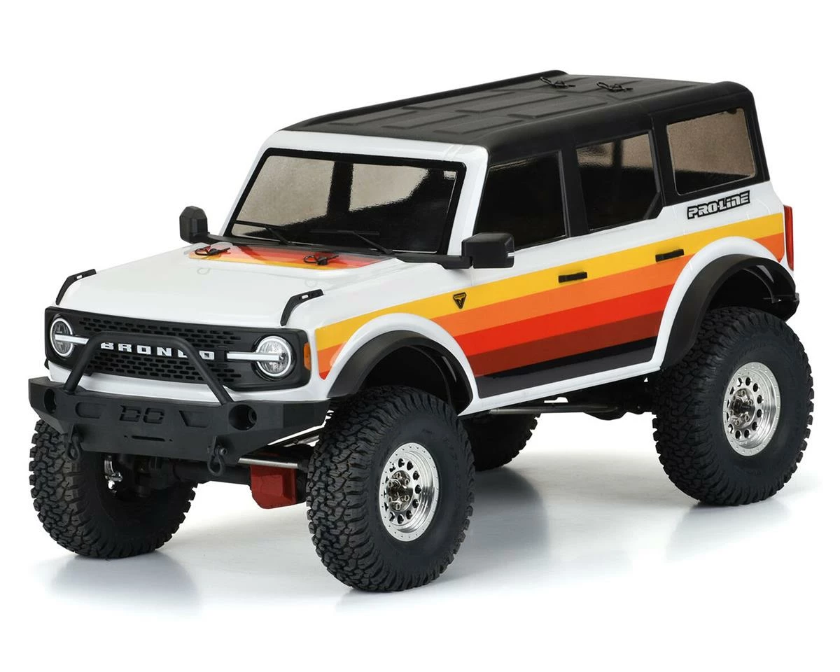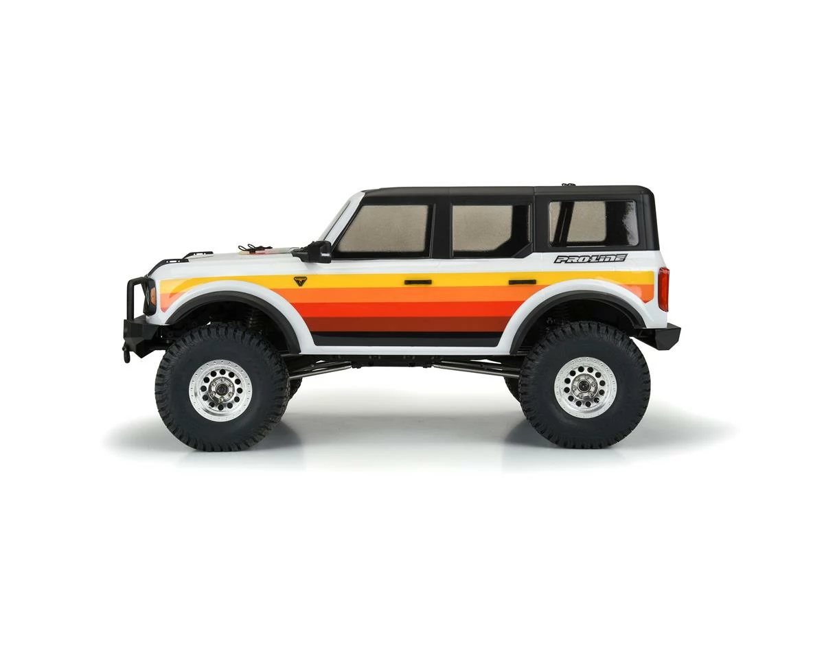 The Proline 2021 Ford Bronco Rock Crawler Body incorporates highly detailed scale features making this the most scale body Proline has ever produced! Featuring a highly detailed front grille, side view mirrors, taillight buckets and door handles this body brings the 2021 Ford Bronco to life. Integrated into the rear of the body is a spare tire holder. This gives the user the option to mount a spare crawler tire to the rear. Adding to the realism are the headlight & taillight buckets which are designed to allow for LED lighting (sold separately) to be installed.