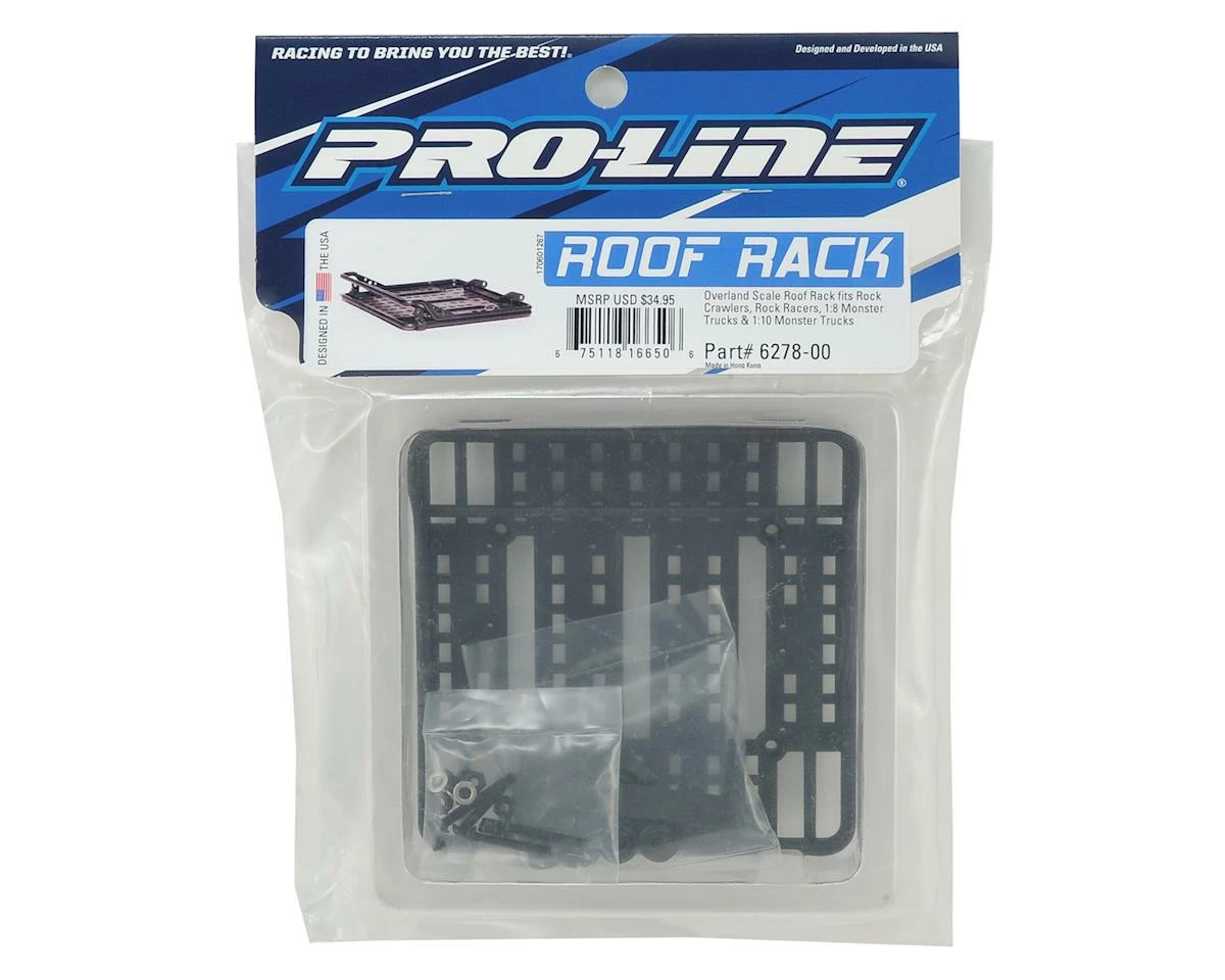 The Pro-Line Overland Scale Roof Rack is made from durable Black Nylon and is a two-piece tubular roof rack design that is perfect for adding scale accessories and scale detail to your rig. Plus, it integrates perfectly with Pro-Line’s 2” LED Light Bar (PRO6276-00) and 4” LED Light Bars (PRO6276-01)! The included hemispherical roof rack mounts allow the Overland to be mounted on body and cage surfaces that are not completely flat for easy installation. The Overland Roof Rack also includes a variety of cutouts covering the bottom that will allow scale straps and ties to be used anywhere you want to strap down any of your favorite scale accessories.