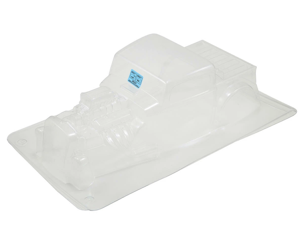 The Rat Rod body features an exposed and highly detailed scale super-charged engine with sticker choices ranging from 396 to 502. Pro-Line finishes off the Rat Rod scheme with custom engine stickers and grill/headlight decals.