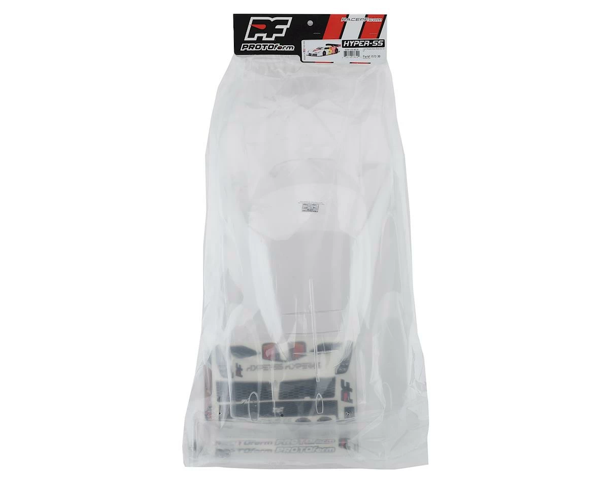 So Protoform is following suit. The game-changing Hyper-SS race body brings 1/8th GT cars into the 21st Century in both style and performance. The radical, low-slung shape includes a unique rear-wing with molded-in Gurney flap. At the rear window area, low-drag louver vents can be trimmed out to allow for efficient engine cooling if required. The Hyper-SS meets all 1/8th GT Global Body Spec rules and is already approved for IFMAR competition at the upcoming World Championship