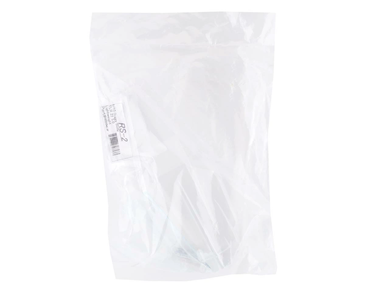 The Raw Speed TLR 22 5.0 RS-2 1/10 Buggy Body fits the TLR 22 5.0 family of vehicles. Package includes “lightweight” clear body with overspray film, window masks and decal.
