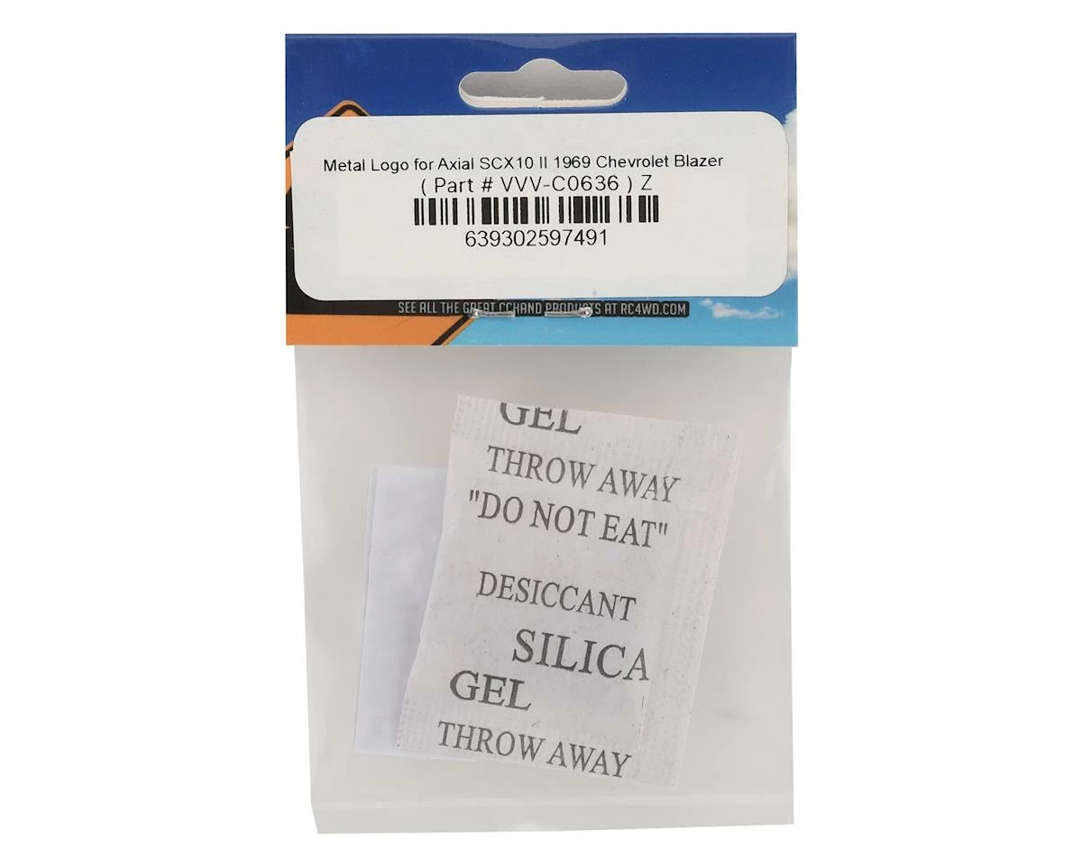 The RC4WDÂ CChand Metal “K/5 Blazer” Logo is designed to add style and realism to your Axial SCX10 II 1969 Chevrolet Blazer Kits. This logo is cut out of metal and is self adhering for easy application. This package contains two self adhering Blazer logos.