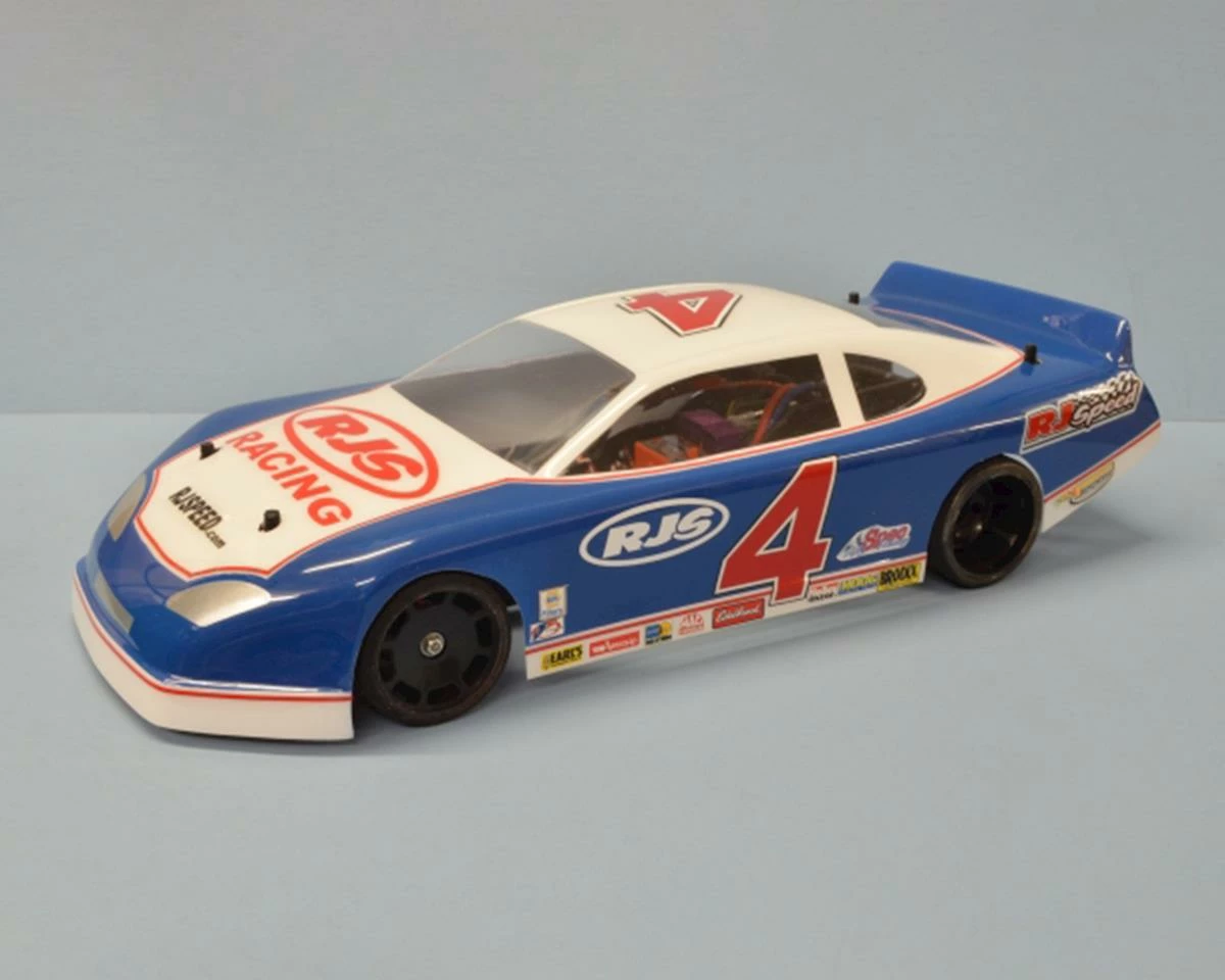 The RJ Speed 1/10 Pro Late Model Stock Body fits the SPEC 10, Sport 3.2, and LTO Sport RJ Speed chassis, but can also be used with other 200mm wide 1/10 oval racing platforms. Package includes clear body and widow masks.