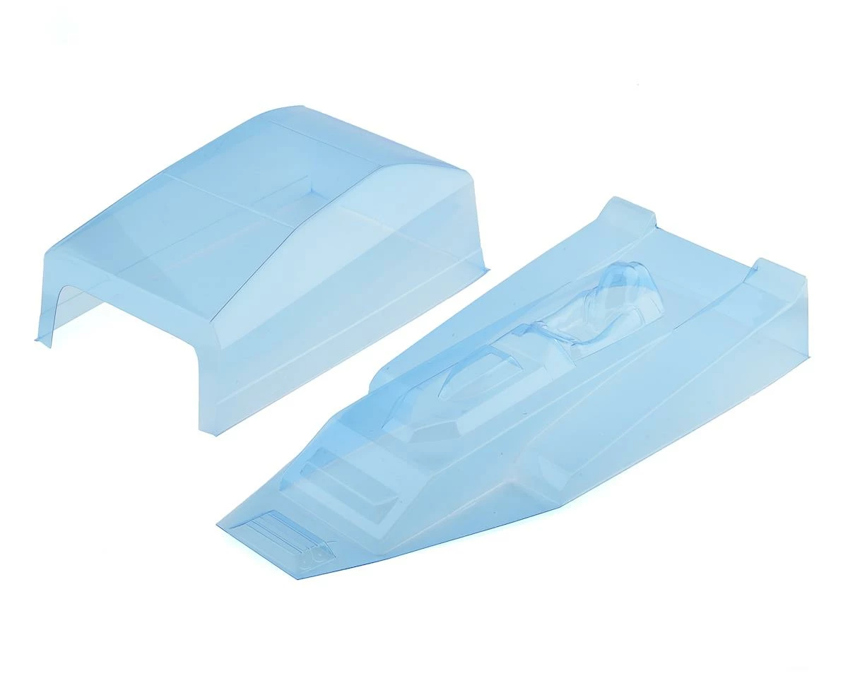 RJ Speed EDM Spec Mod Body Kit. Includes 2 piece clear body with braces, nylon screws and nuts, mounting hardware, and window masks.