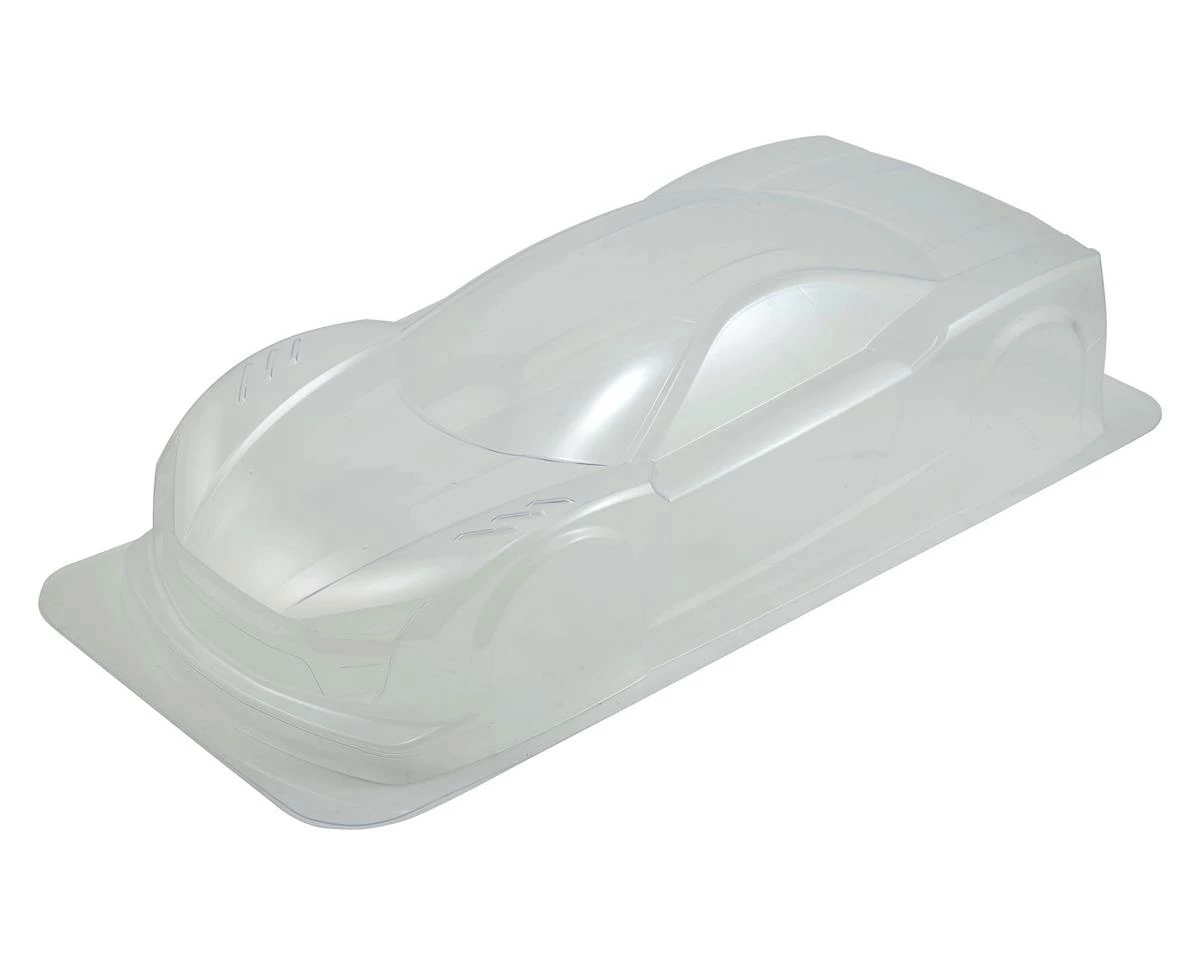 This is the Tamiya 190mm Raikiri GT 1/10 Scale Body Set, in Clear Lexan. The body is an imagination concept by the industrial design company Znug Design, Inc. based in Japan. The body comes complete with vinyl stickers to complete the window trim, headlights, tail lights and other livery markings. A handy window masking seal is also included for easy masking of the windows when painting your body.