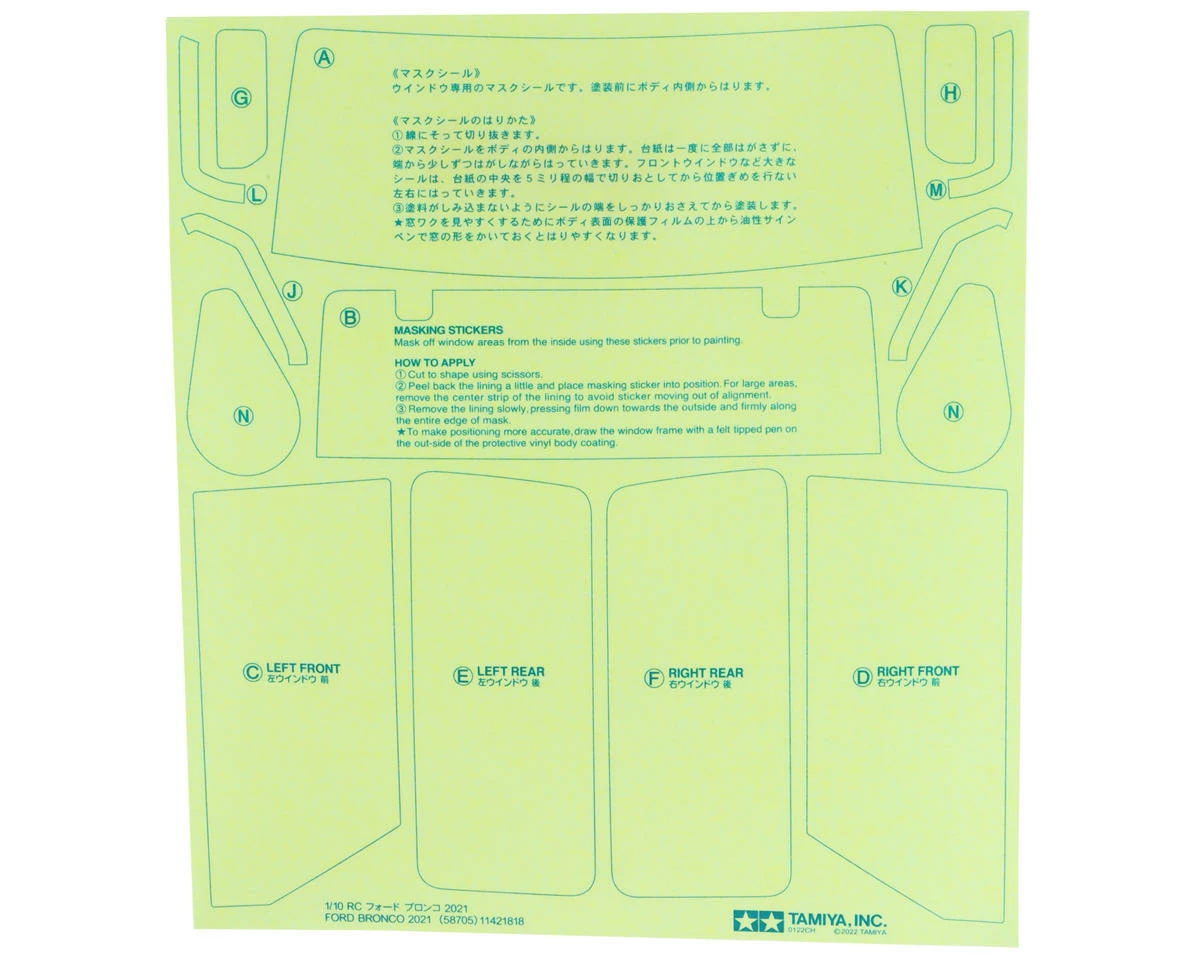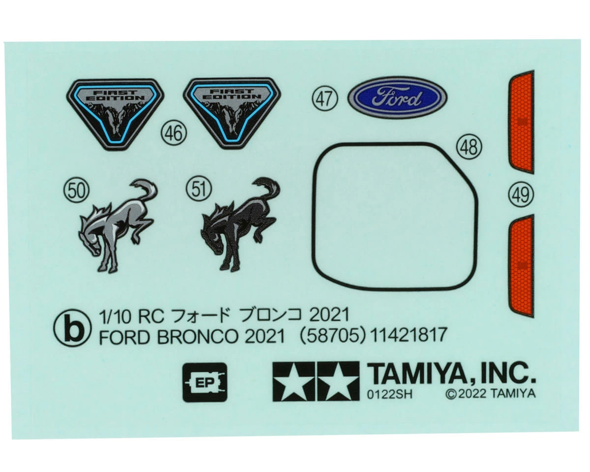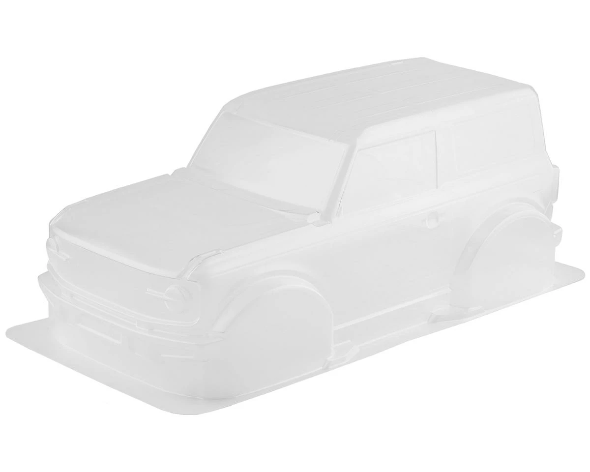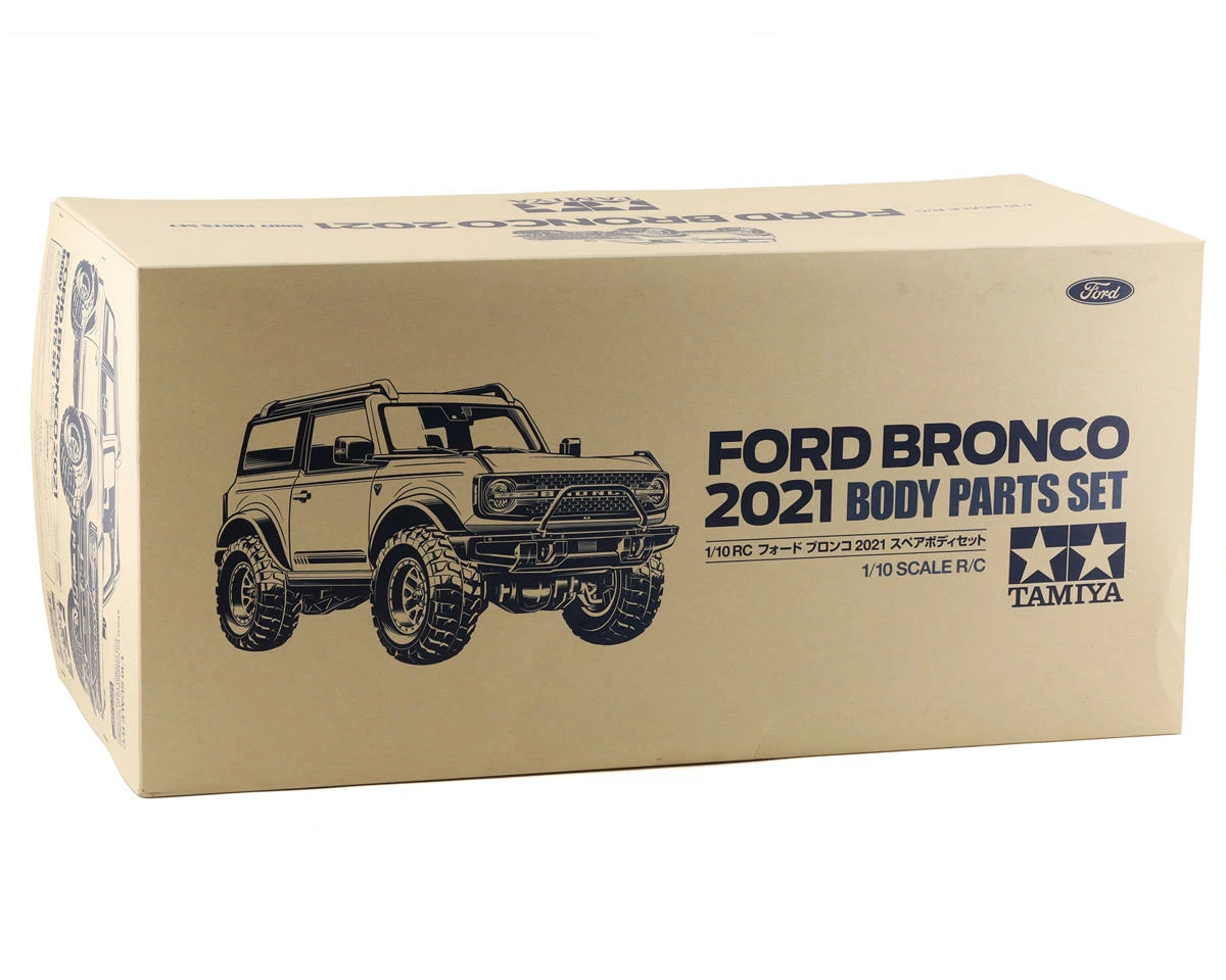The Tamiya 2021 Ford Bronco Body with Parts Set encompasses the iconic styling of the Ford Bronco in this 2021 model. With great anticipation the 2021 Ford Bronco has been a highly sought after truck and is now available in this detailed clear body. This body depicts the two door first edition version of this vehicle with highly detailed molded plastic scale parts bringing every detail to life. Compatible with the CC-02 chassis vehicles (M Wheelbase 252mm) makes this an excellent scale option.