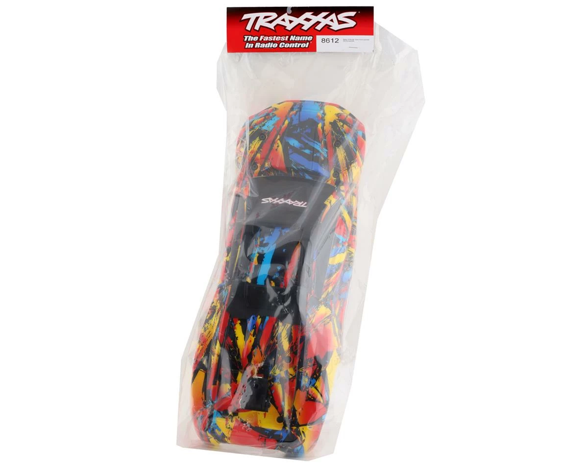 Traxxas E-Revo VXL 2.0 Pre-Painted Monster Truck Body. This replacement body intended to freshen up your Traxxas E-Revo VXL 2.0. Package includes one pre-cut body, with factory installed body mounts and roof skid.