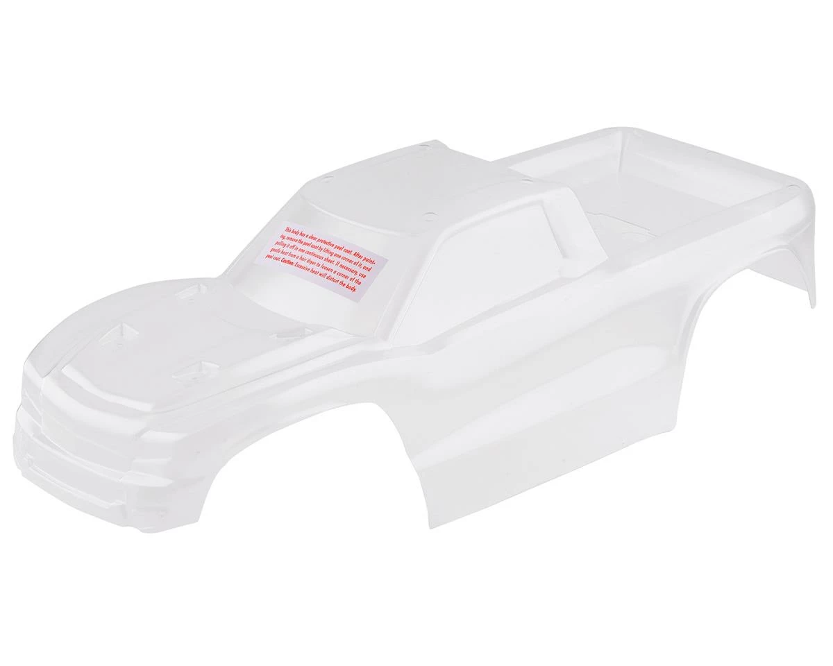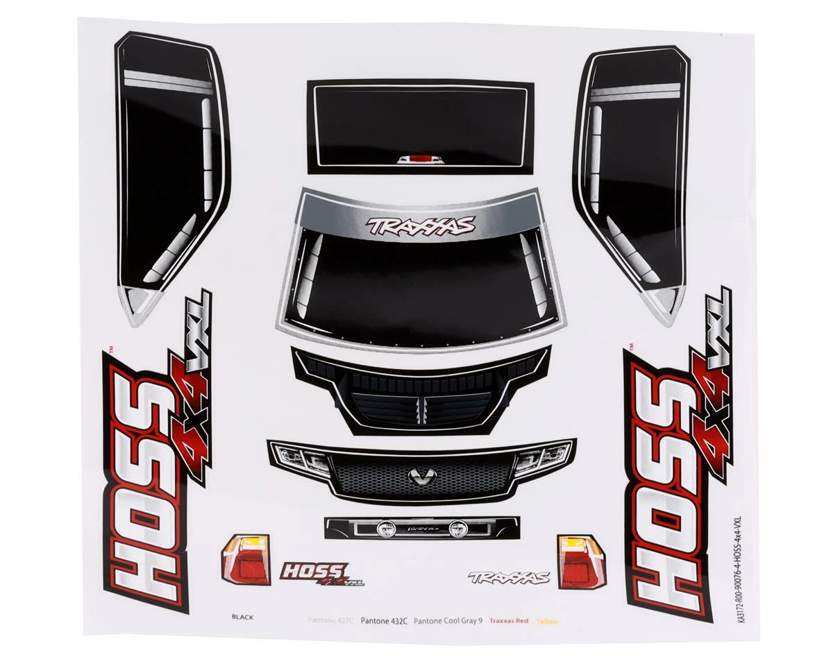 Traxxas Hoss 4×4 Pre-Cut Body Shell. This optional clear body is a great way for you to apply your own custom paint scheme to the Traxxas Hoss 4×4. Package includes one clear body, one window mask sheet and one decal sheet.