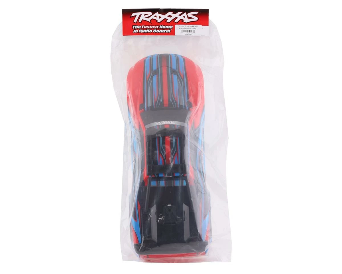 Traxxas Maxx Pre-Painted Monster Truck Body. This replacement body is intended for the Traxxas Maxx. Made from durable polycarbonate, this body features ProGraphix paint with pre-applied decals. The body also features pre-installed body mounts, roof skids and a tailgate protector. Package includes one pre-painted body.