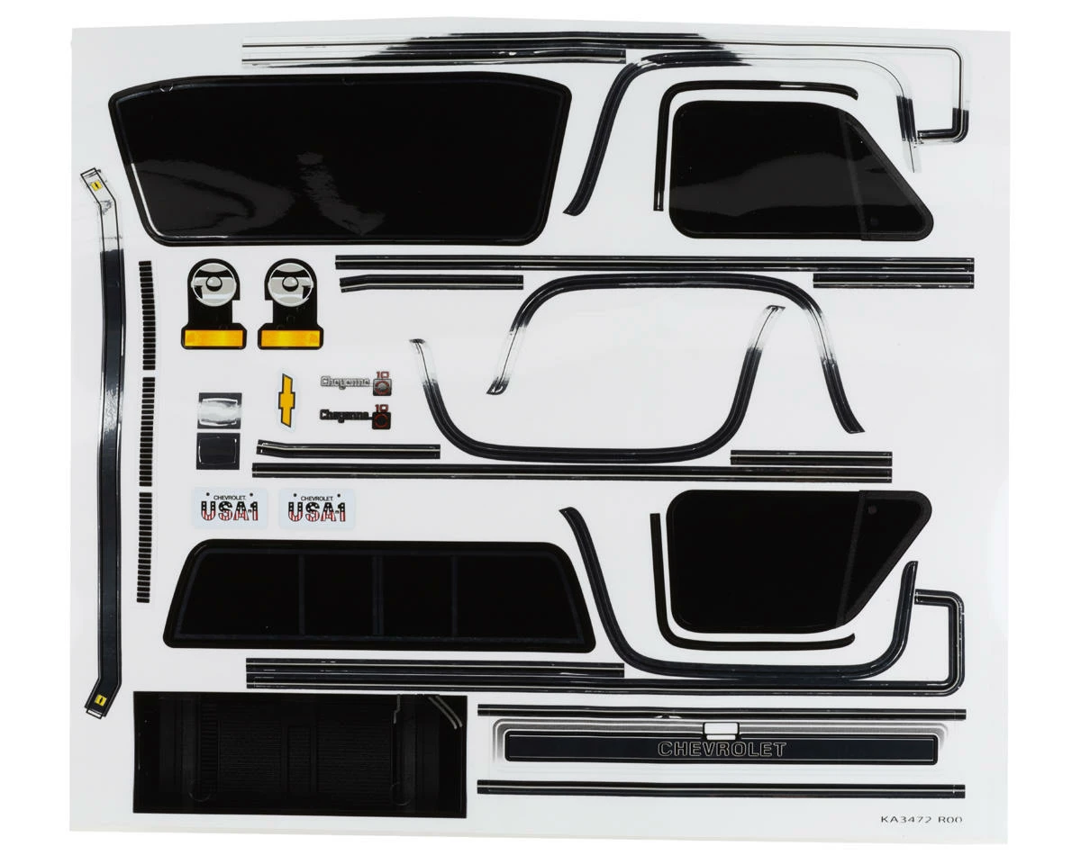 Traxxas TRX-4 1979 Chevrolet K10 Body Kit. This clear body is an excellent option to give your TRX-4 a custom look. Designed after the 1979 Chevrolet K10 pickup truck this body incorporates incredible scale details and includes molded plastic body accessories, clipless body frame, fender flares, mounting hardware, window masking, and decals.