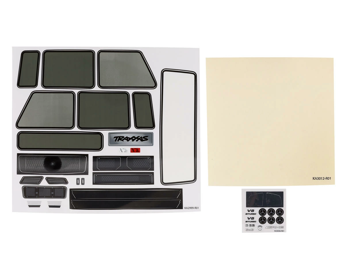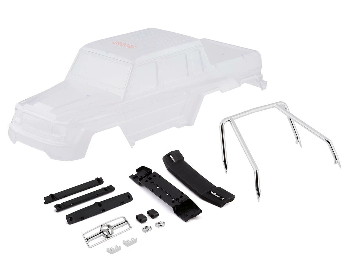 The Traxxas TRX-6 Mercedes-Benz G 63 Clear Body comes precut and is ready for you to give your TRX-6 a custom look. Includes the Side Mirrors, Door Handles, Light Buckets, Windshield Wipers, Grille, Roll Bar, Full Decal Sheet, and an overspray wrap for painting.