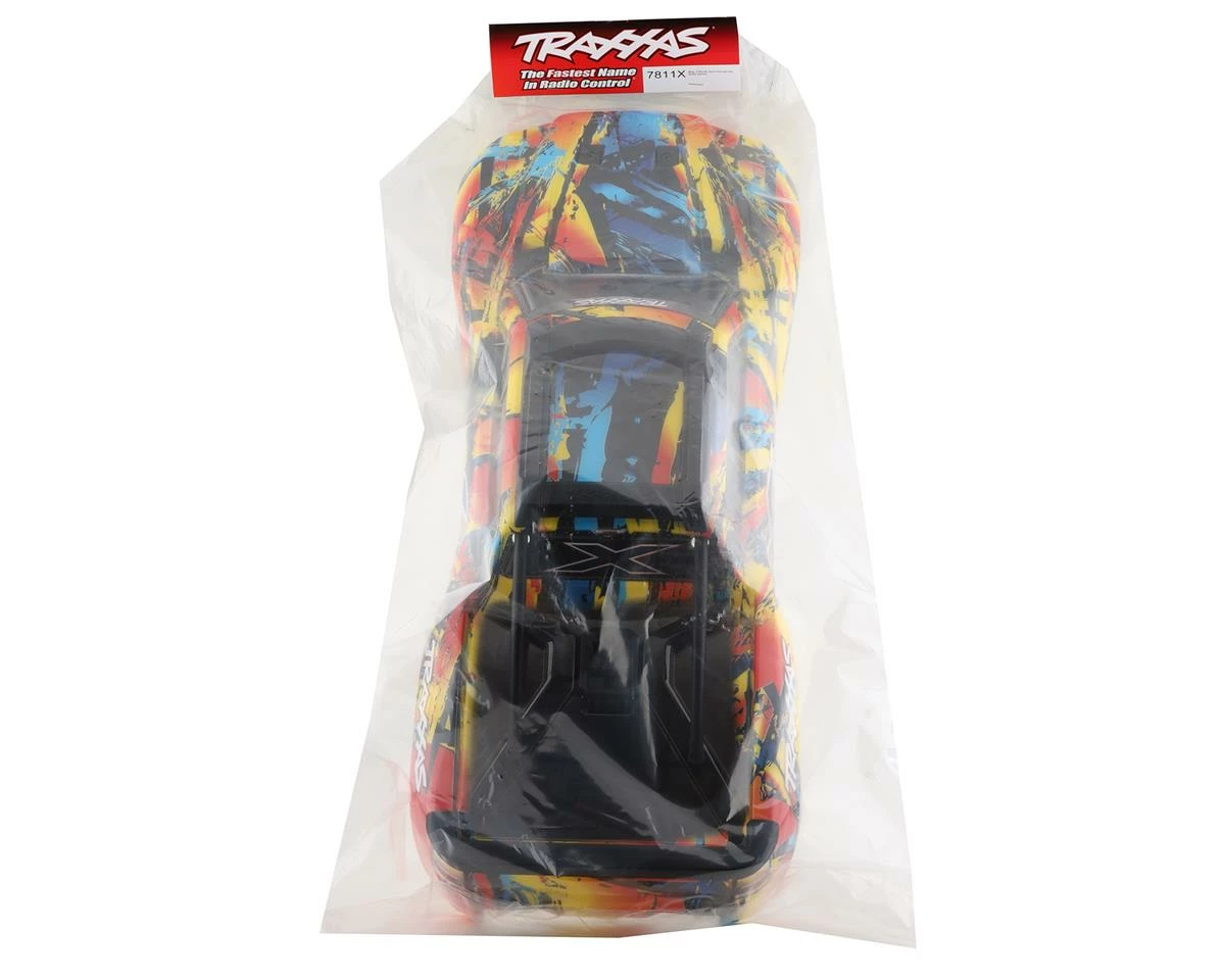 Traxxas X-Maxx Pre-Painted Body. This replacement body comes trimmed and pre-painted for ease of use. ProGraphix are applied from the factory for perfect fit and finish. To complete the finish, the body comes with body mounts, rear body support and tailgate preinstalled. Package includes one pre-painted body and one decal sheet intended for the Traxxas X-Maxx.