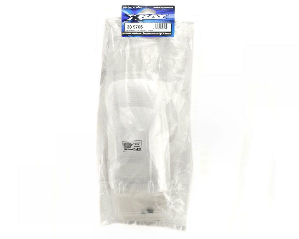 This is a replacement clear lexan body for the XRAY M18 1/18th scale touring car. This 150mm clear Lexan® body with protective film comes with windows masks, decal sheet, wing and hardware.