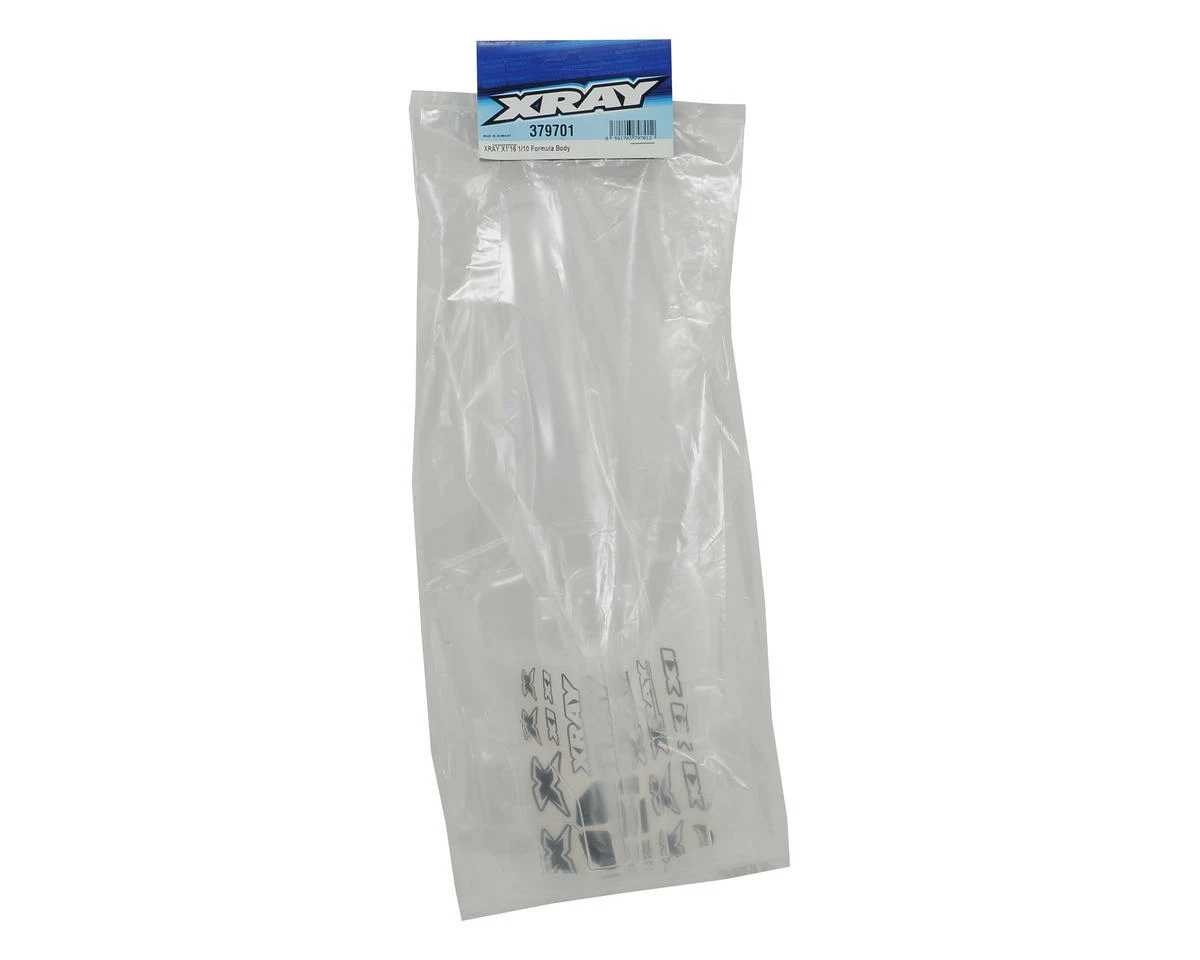 XRAY X1 2016 1/10 Formula Body. This high performance body was developed to fit the X1 platform and work in most track conditions, while retaining the true to form look of an authentic F1 machine. Designed to provide optimum downforce, steering and traction, as well as maximum stability. The flat body and cockpit sides are flat to direct airflow and help provide additional stability. The body is molded from premium quality .075mm Lexan material and the body features a molded driver figure making it legal for races that require a driver figure.