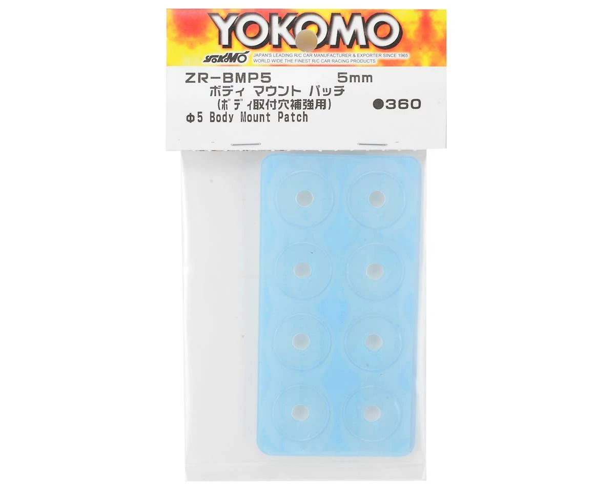 This is a pack of eight Yokomo Body Mount Patch Plastic Disks. These plastic disks feature a 5mm diameter inner hole, with a 18mm total diameter, and are backed by sticky adhesive. Simply apply these disks on the inside of your body to prevent the body posts from rubber through your paint.