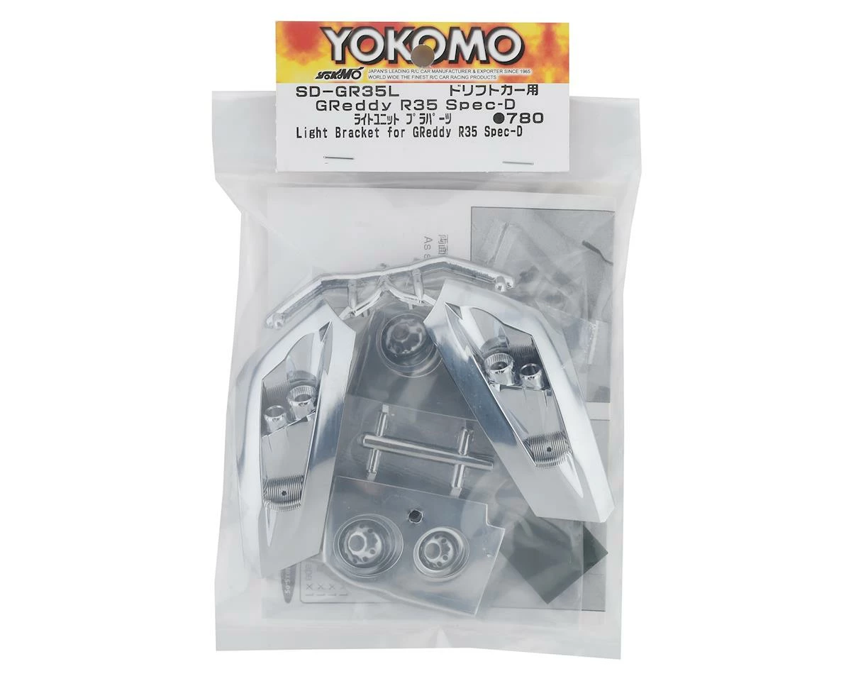 This is an optional set of Yokomo Greddy R35 Spec-D Light Buckets, designed for use with the Greddy R35 Spec-D Body Set used with the YD-2, YD-4 and YD-4MR drift kits. Includes double-sided tape, aluminum mesh tape for mounting and is compatible with LED lighting. Use with YOKD-065 LED light unit or other compatible light units.