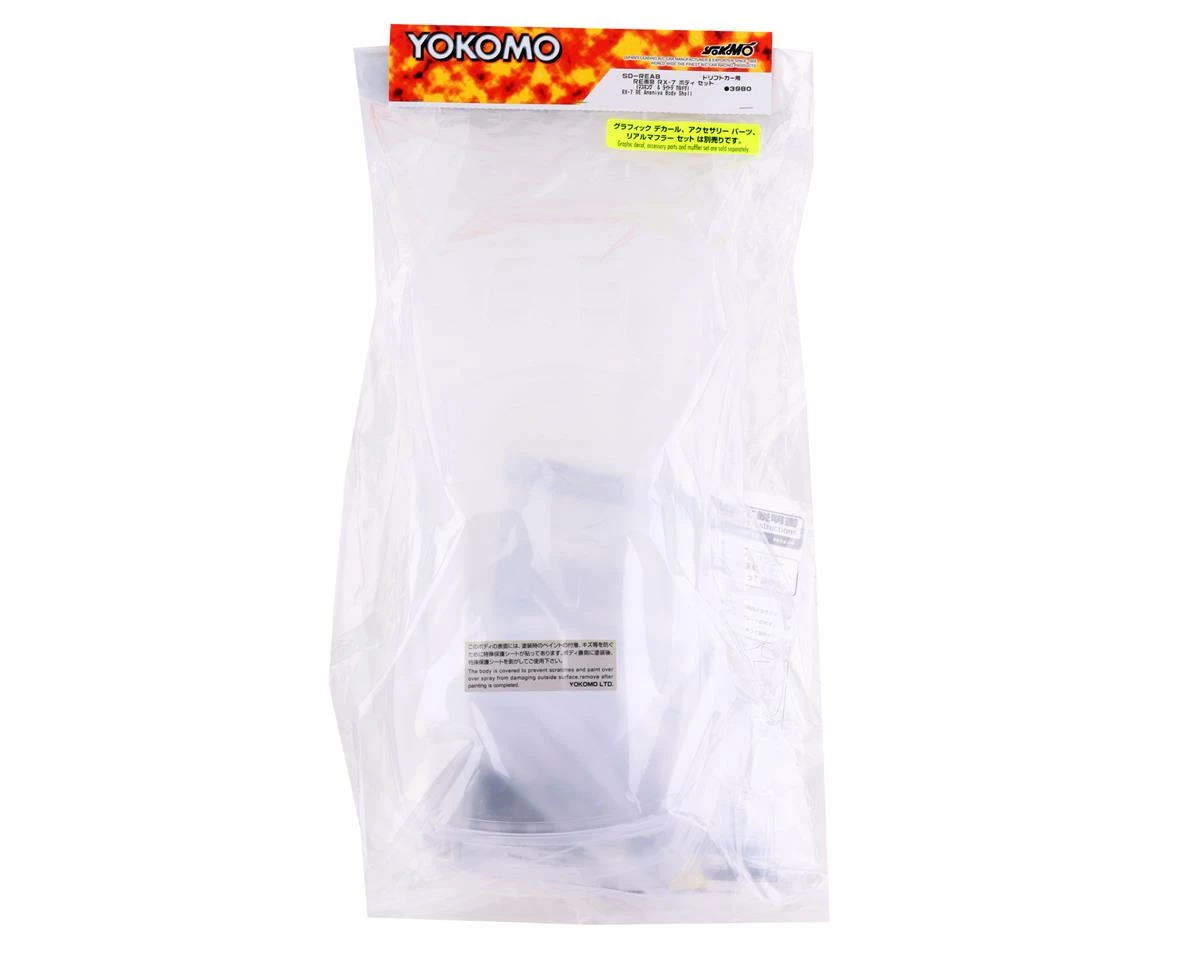 Yokomo RE Amemiya FD3S RX-7 Body Set. This clear polycarbonate body comes with decals to depict light buckets, window frames, grill and more. Accessories can be purchased to add further details to the RX-7 body. Package includes one clear body, window mask and decals.